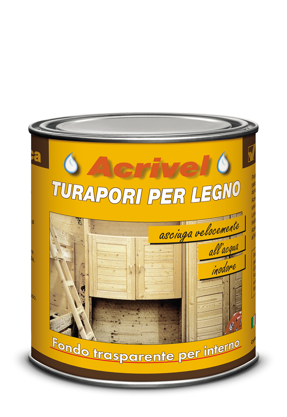 Acrivel è di facile applicazione, aderisce perfettamente su qualsiasi superficie, asciuga velocemente, riempie i pori ed elimina le imperfezioni del legno, si carteggia facilmente e lascia uno strato perfettamente trasparente e antingiallente.