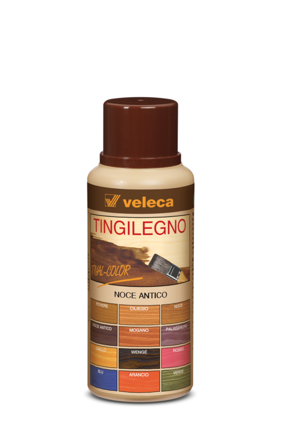 Speciale soluzione colorante, ideale per modificare il colore del legno grezzo (o sverniciato e carteggiato fino al grezzo), destinato ad ambienti d’interno.